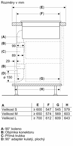 - - pod varnou desku s integrovaným ventilačním systémem není nutné instalovat mezidno. Zásuvky a / nebo police musí být odnímatelné. Zadní panel korpusu může být zachován, ovšem je nutné zhotovit výřez pro výstup vzduchu (doporučení o umístění a velikosti otvoru naleznete v montážním návodu).