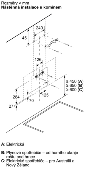 - Minimální vzdálenost nad plynovou varnou deskou 650 mm