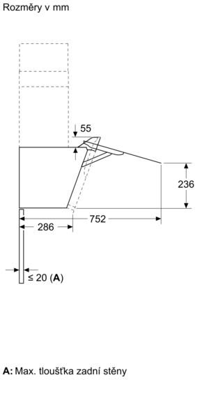 - Max. výška spotřebiče při recirkulaci 1213 mm