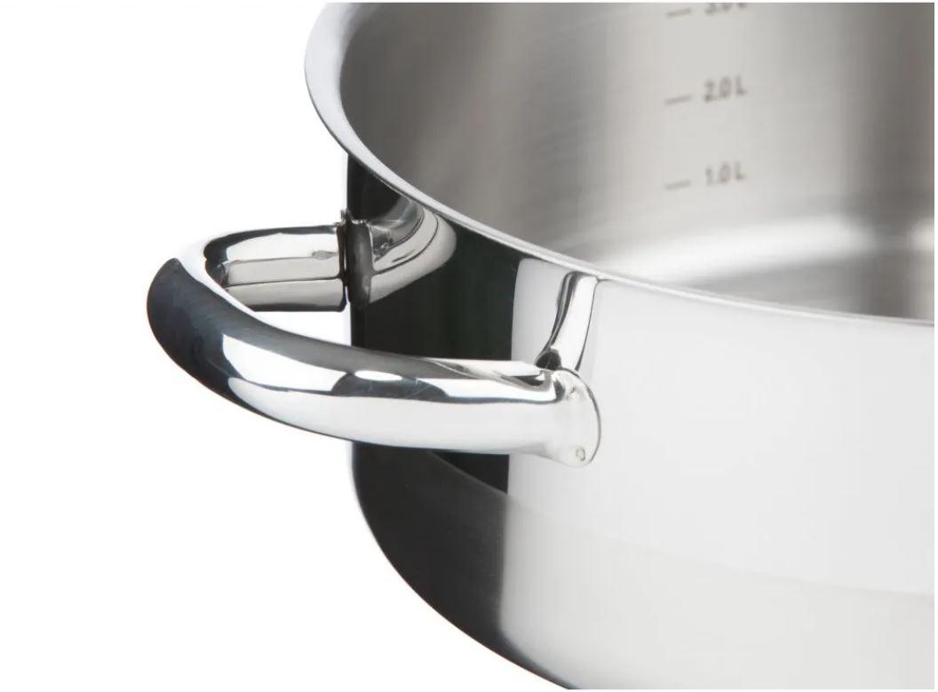 Robustní celokovové úchyty tohoto rendlíku dodávají nádobí odolné vzezření. Designově výborně doplňují kulatý nerezový úchyt skleněné poklice z temperovaného bezpečnostního skla. Poklice je navíc opatřena parním ventilem pro odchod přebytečné páry. Sofistikovaným detailem jsou odtokové drážky pod úchytem poklice, jimiž snadno odtéká voda po mytí v myčce.