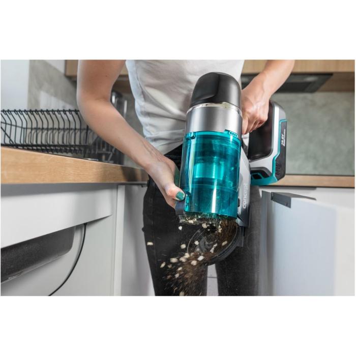 - Celé tělo vysavače je plně rozložitelné a omyvatelné. Prachová nádoba s objemem 0,5 l nabízí rychlé a hygienické čištění. Po naplnění stačí zmáčknout tlačítko a prach je rázem venku, aniž byste se museli samotné nádoby dotknout. Vysavač je vybaven kvalitním HEPA filtrem 13, což ocení zejména alergici a rodiny s malými dětmi. Díky senzoru znečištění filtru budete přesně vědět, kdy je nutná jeho výměna, aby vám vysavač dlouho a efektivně sloužil.