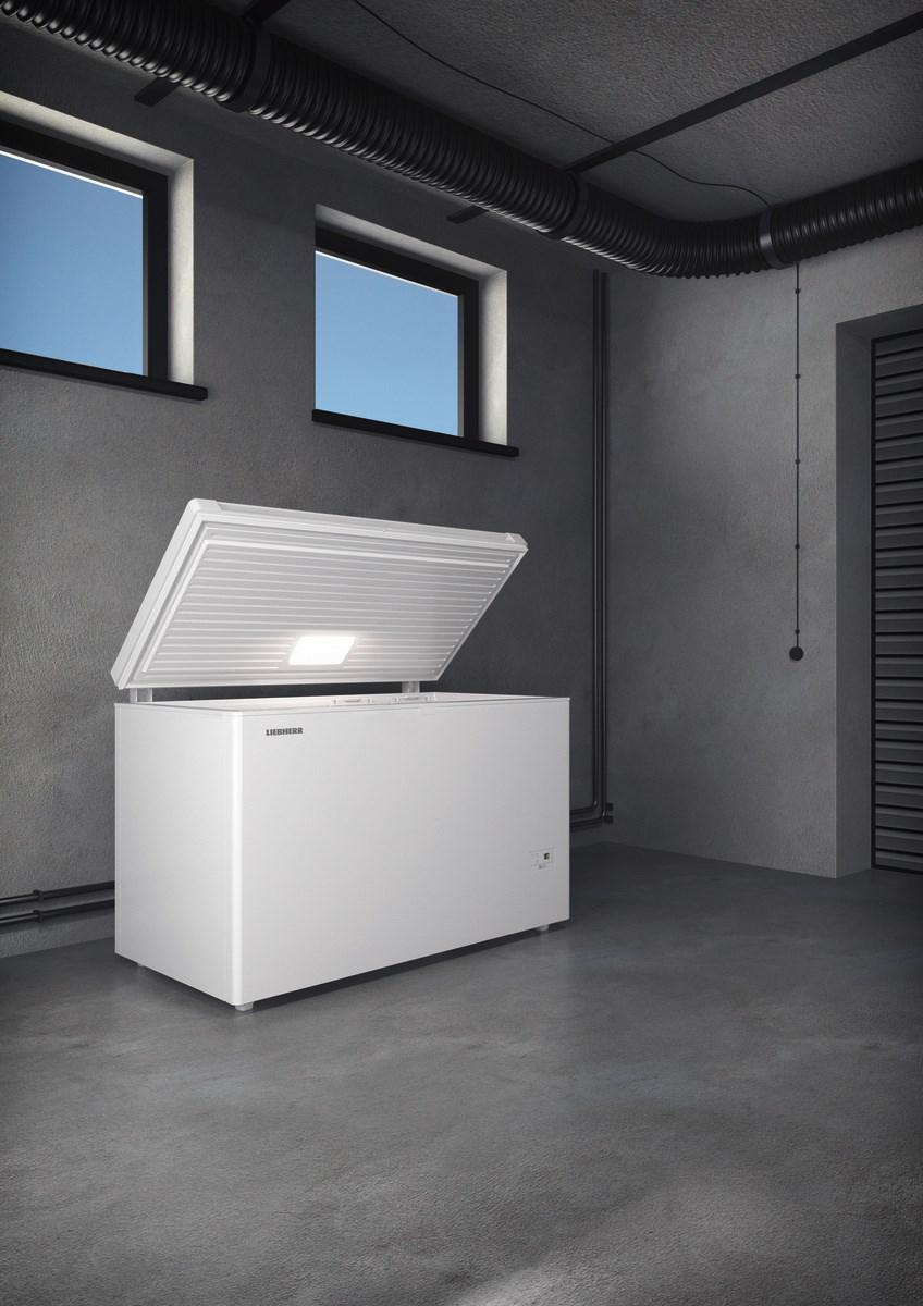 Technologie StopFrost skvěle předchází a značně omezí tvorbu námrazy uvnitř truhlicové mrazničky rychlým zachycováním a odstraňováním vlhkosti přinášené vzduchem. Díky systému StopFrost je odmrazování potřeba mnohem méně. Jakmile je truhlicová mraznička otevřena, může dovnitř vniknout teplý vzduch. Systém StopFrost zabraňuje vzniku podtlaku uvnitř spotřebiče, pokud je víko následně zavřeno, takže lze víko mrazničky ihned a snadno bez námahy znovu otevřít.